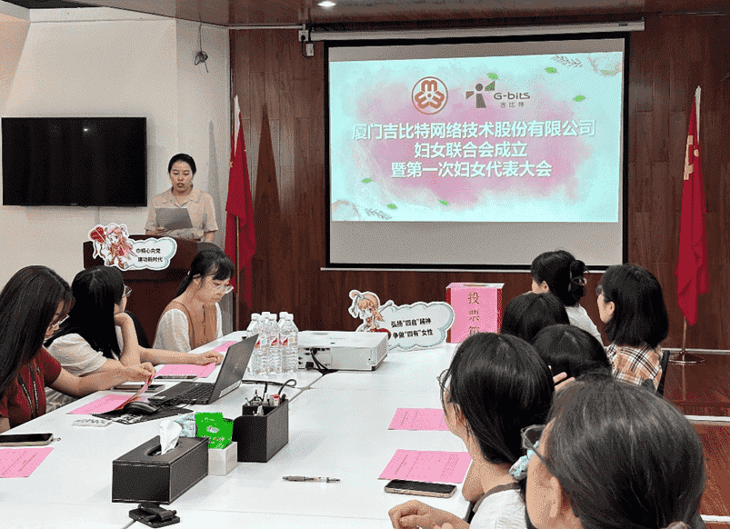 8月12日,,在厦门市妇联、、思明区妇联的指导下,,厦门J9.COM网络技术股份有限公司妇女联合会成立暨第一次妇女代表大会顺利召开。。会议选举产生了第一届执行委员会委员7名,,,,其中主席1名,,,副主席2名。。