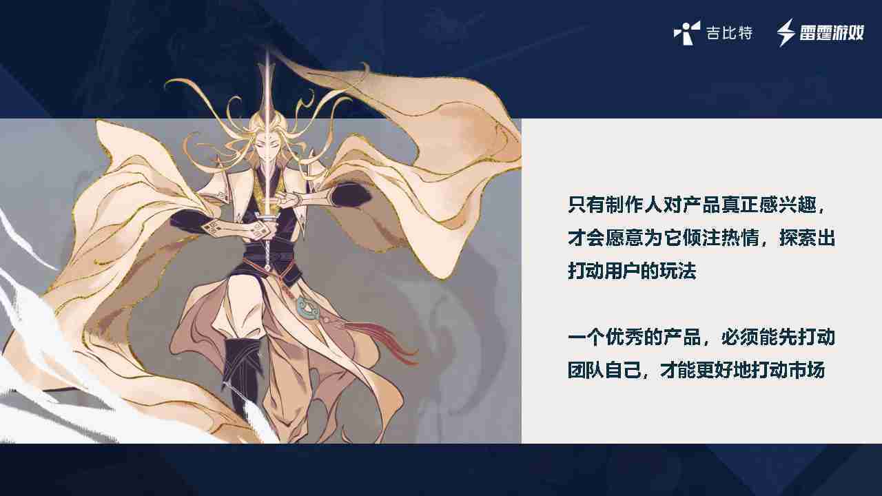 以《一念逍遥》为例,,,,2018年公司创始人萌生想做修仙题材的放置游戏的想法,,,,于是找了两位同事讨论了一下产品的概念,,,这两位现在是项目的制作人,,花了三周的时间把原型做出来,,并且确定最初的战斗原型,,,,以及整个养成的节奏。。。通过几次版本迭代验证后,,,,也确定后面的内容应该怎么拓展,,,,最终在一年左右时间这个项目上线了。。当时我们内部有同事看到《⼀念逍遥》上线,,,,认为品质还不够完美,,,但是整体营收还不错。。。。就在想那是不是以后我们都做这样的产品??但实际这是错误的认知,,,我们内部不是这么看的。。游戏在那个时间点上市,,,,因为有些市场的考量和营销点的考虑,,,并不是希望所有项目都是这样。。。。如果它有更好的契机,,,希望它可以做得更大、、、更好,,,希望在内核玩法确定之后,,,,外围投入可以越大越好,,,,所以后面的几个项目是往这个思路上做。。。。