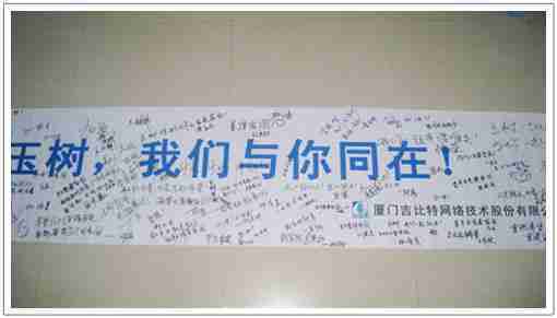 2010年4月14日7时49分,,青海省玉树县发生7.1级强烈地震。。自消息发布以来,,J9.COM的同学们时刻都在关注玉树的情况。。。。