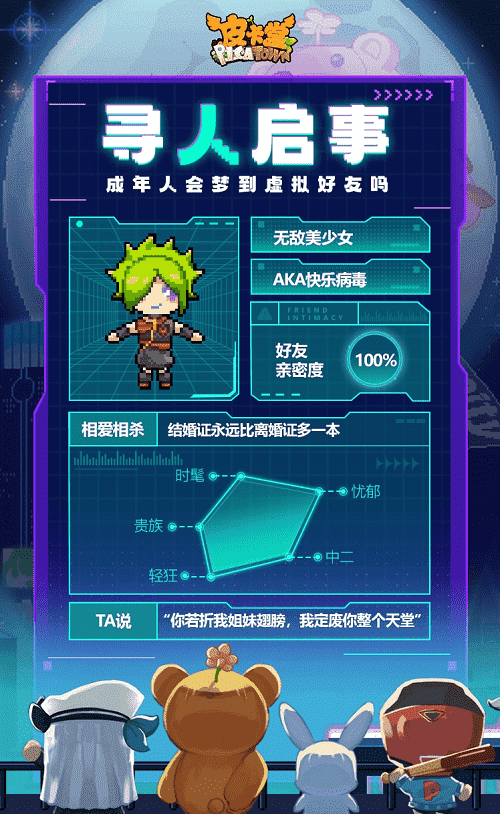 除此之外,,,,更丰富的全新玩法也会在这里与大家见面,,,希望给大家带来不一样的游玩体验。。。。升级后的皮卡小镇,,,,大家可以和闺蜜一起逛购物街,,,邀请三两好友来到自己开的小店,,还可以在小屋体验海岛或城堡生活……总之,,希望大家能在游戏中找回最快乐的自己,,,,享受最纯粹的社交魅力。。