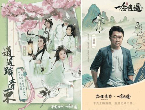 在游戏之外,,,《一念逍遥》一直致力于打造国风修仙原创IP,,,以音乐、、漫画,,小说等衍生内容去延展丰富游戏内容。。。上线以来,,整整做了十首歌,,,,小说应该也是喜马拉雅平台今年游戏品类小说收听量Top1的作品;而在营销的内容传播上,,《一念逍遥》也一直秉承比较国风的基调,,,传递诗词、、、文化内涵,,,如如清明节定制汉服合作,,传递中国传统的清明踏青、、、清明诗会文化。。。