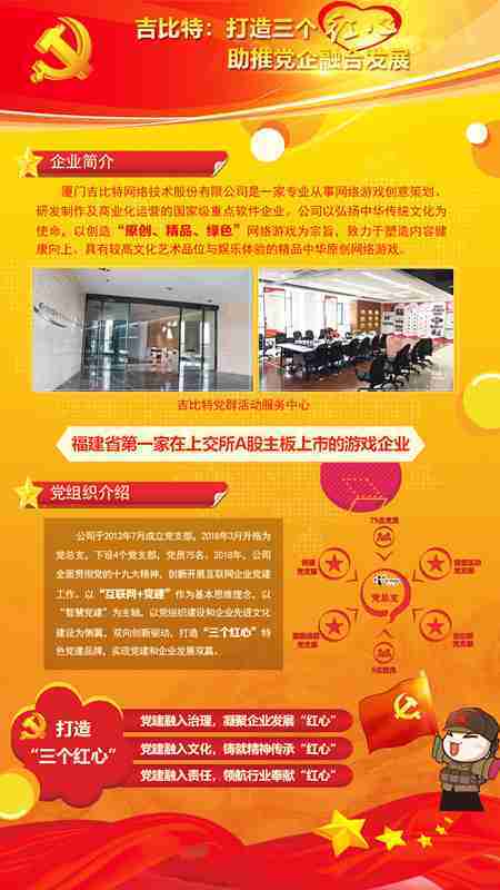 未来公司将全面学习贯彻习近平新时代中国特色社会主义思想和党的十九大精神,,持续强化“互联网+党建”的思维理念,,,,以“智慧党建”为主轴,,,,以党组织建设和企业先进文化建设为侧翼,,,双向创新驱动,,,,引领有信仰、、、、有情怀、、、有价值的新时代游戏研发运营,,,在不断发展壮大的同时,,成为行业的“红色标杆”,,实现党建和企业发展双赢。。